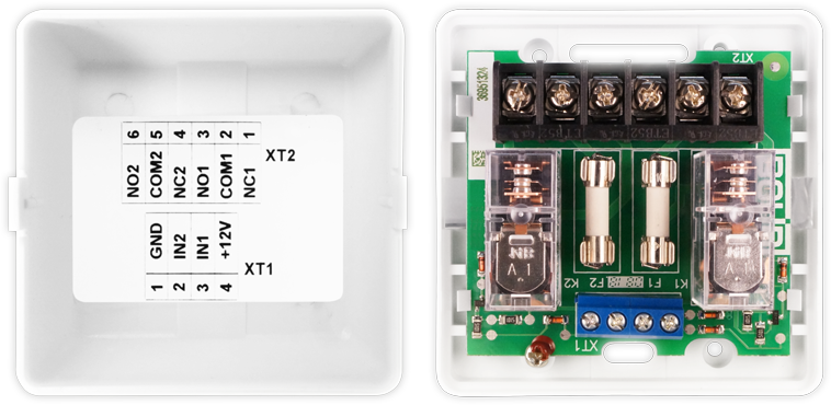 Устройство содержит два реле с переключающими контактами и схему управления, позволяющую включать реле сигналом уровня логическая «1» (+ 5В КМОП). Используется совместно с контроллером доступа «С2000-2», работающим в режиме «Шлагбаум», для управления светофором, а также коммутации исполнительных устройств системах охранно-пожарной сигнализации и контроля доступа.